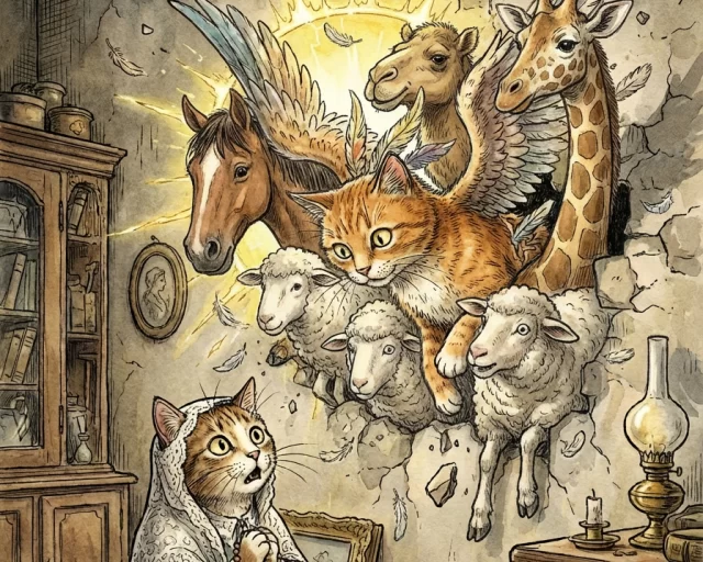 「猫キャラの、美しい名画風降誕劇をAIで作ろう」