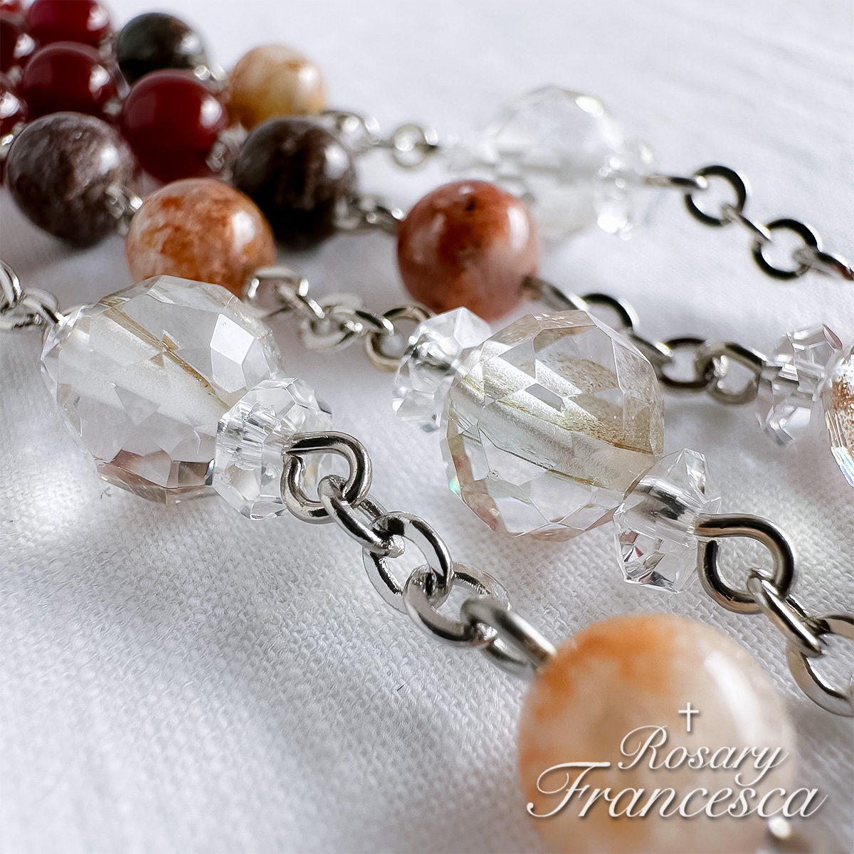 - Main Beads: Red agate, Garden quartz (6mm), Rock crystal (8mm)