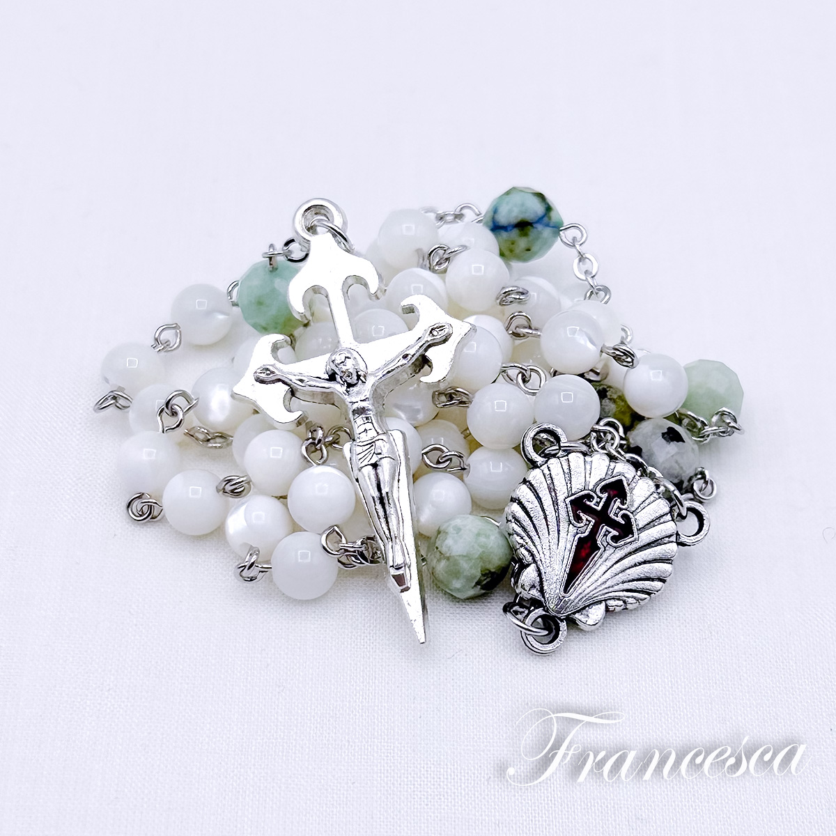 巡礼のロザリオ(マザーオブパール&クリソコラ)