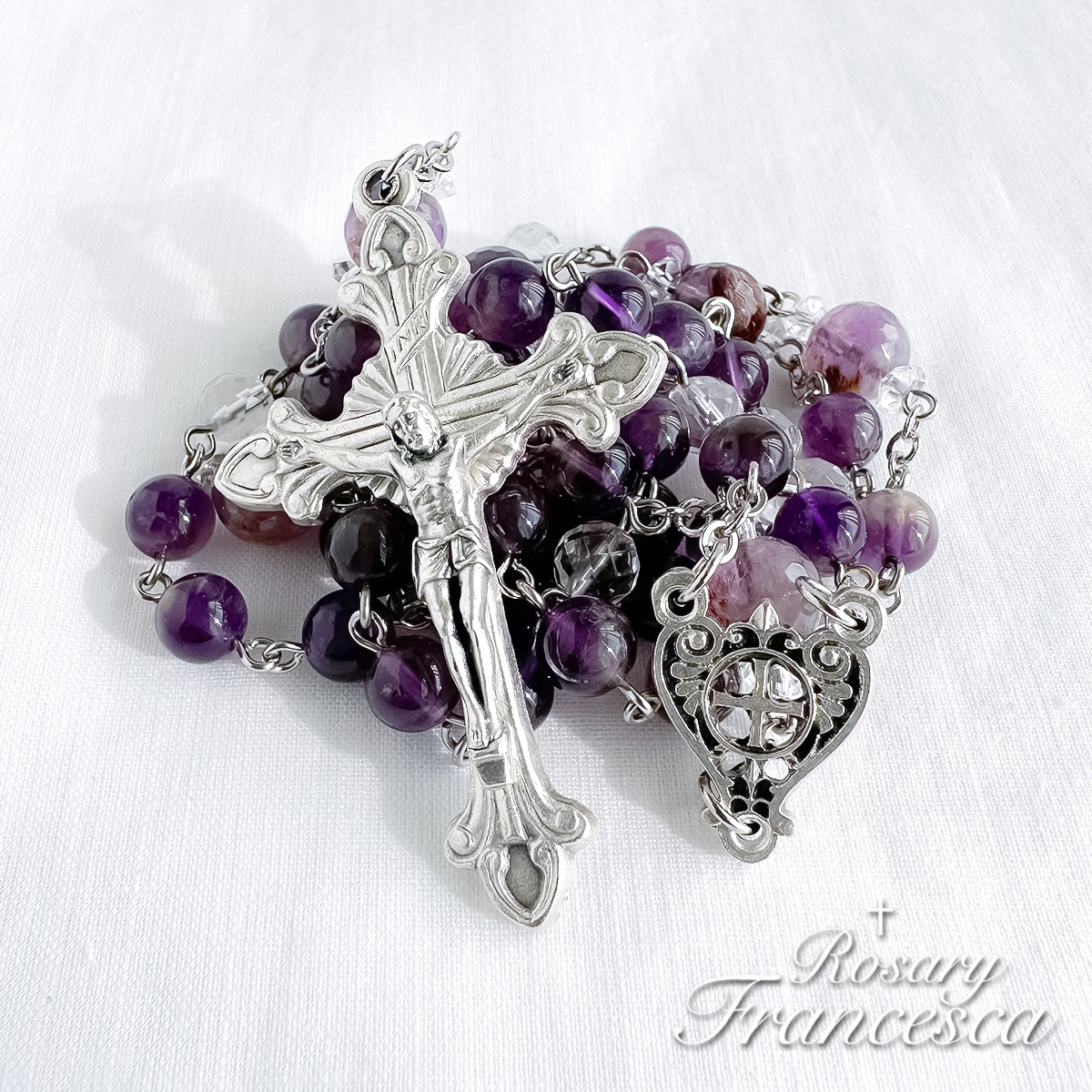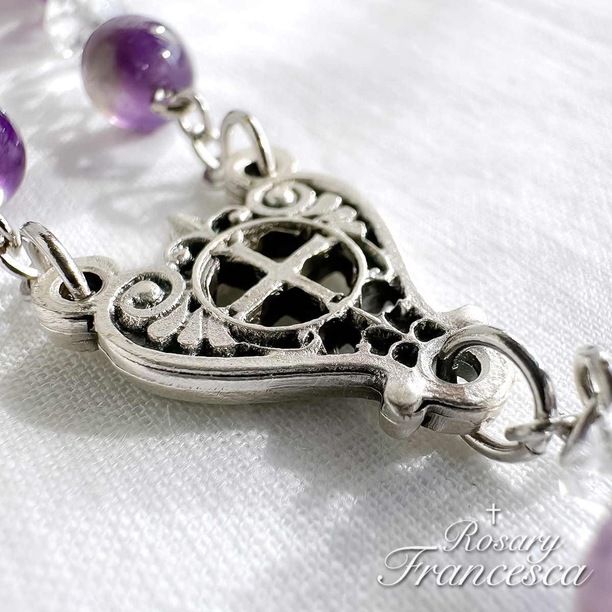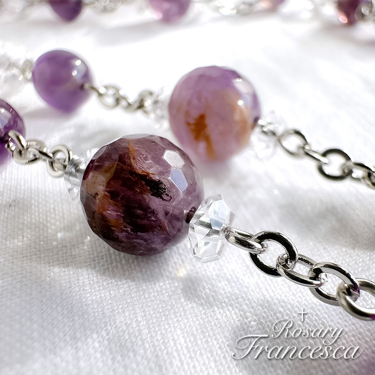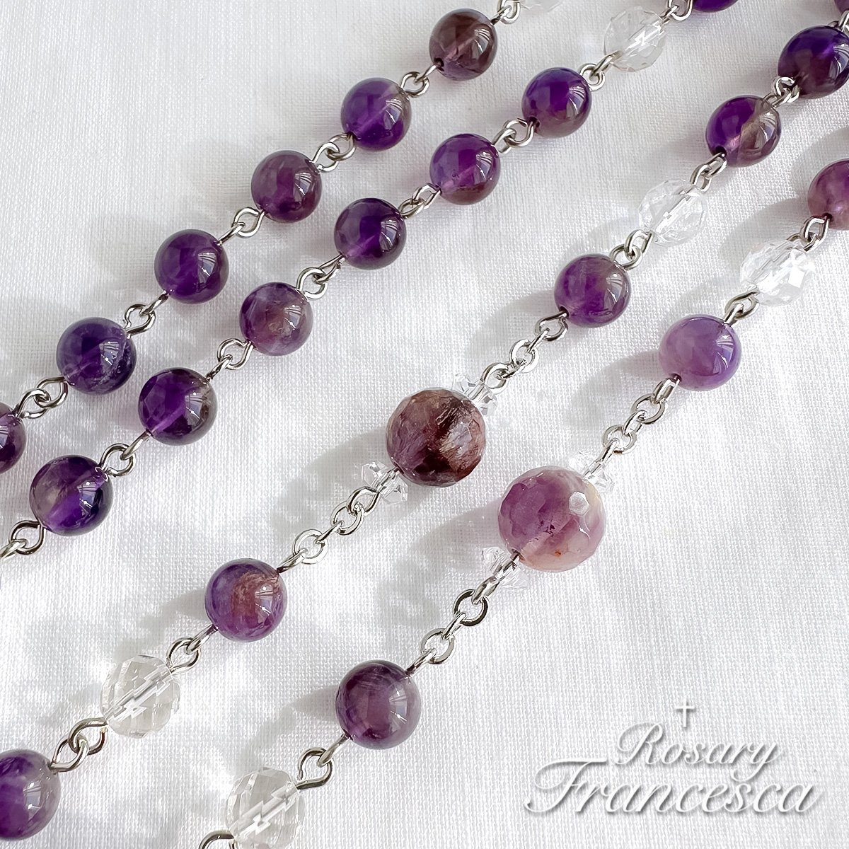 そして主の祈りの珠にはガーデンアメジストを使いました。